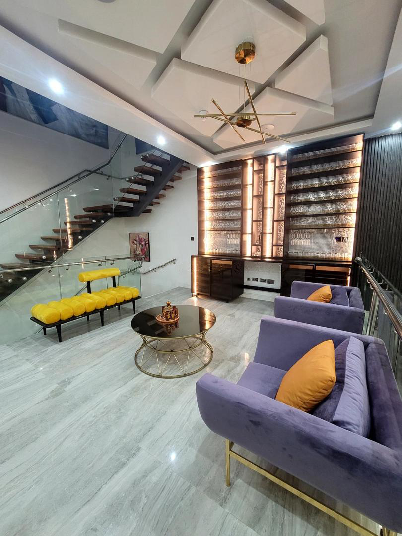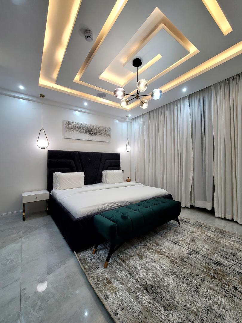Spacious Living Area: Relax in our spacious and elegantly furnished living room, complete with cozy seating and a large flat-screen TV with streaming services.